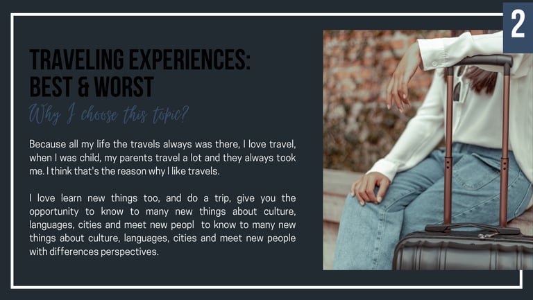 From a young age, I’ve been fascinated by cultures, languages, and the stories behind every trip. This presentation merges storytelling and visual design to explore various travel methods and their emotional impact.
